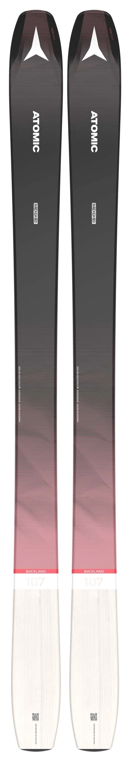 The ski of choice for Atomic freeride athletes like Izzy Lynch and Arianna Tricomi, the Atomic Backland 107 W delivers freeride touring performance in a wide, lightweight package. At 107mm underfoot this is Atomic’s widest women’s touring ski but the ski is weight optimized for easy ascending thanks to a full-length Carbon Backbone and Ultra Light Woodcore. The Powder Rocker profile and revolutionary HRZN Tech in the tip deliver more surface area for maximum float in deep pow. Capable of charging through crud and chop with total confidence, a Dura Cap Sidewall allows for smooth and stable handling on harder snow. A ski for intense lines and proven on the Freeride World Tour, Atomic Backland 107 W offers next level performance for a next level skiing experience.