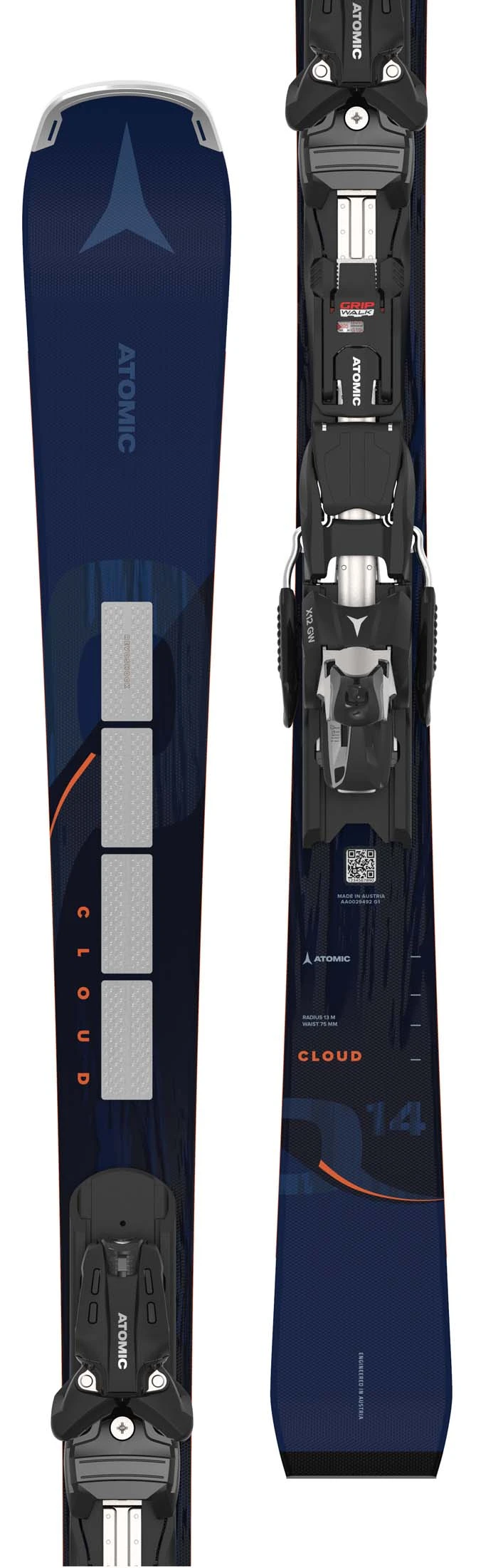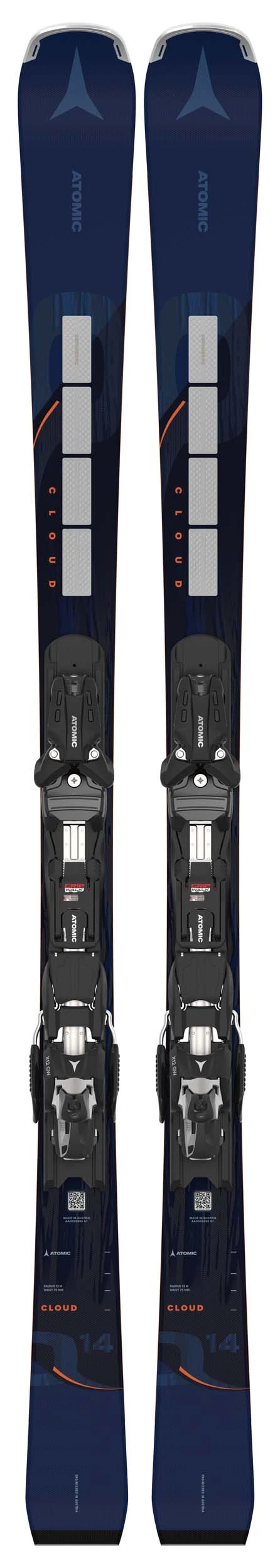 The Atomic Cloud Q14 Revoshock S is the one-ski on-piste quiver for hard-charging female skiers. The Cloud Q14 draws on its World Cup heritage, with race-proven elements like the chatter eliminating, acceleration generating Revoshock S, complimented by the Atomic All-Condition Piste Shape, Dura Cap sidewalls, and a generous 75mm waist width. The internal TI Powered Titanal laminate, and lightweight Flite Woodcore keep the ski responsive and the performance predictable. Late-afternoon laps will feel just as quick and exciting as first tracks down a freshly groomed bowl. The Multi Radius Sidecut makes confident, short slalom turns through the variable snow of a storm day or laying out long, fast, stable arcs over pristine morning corduroy equally fun.