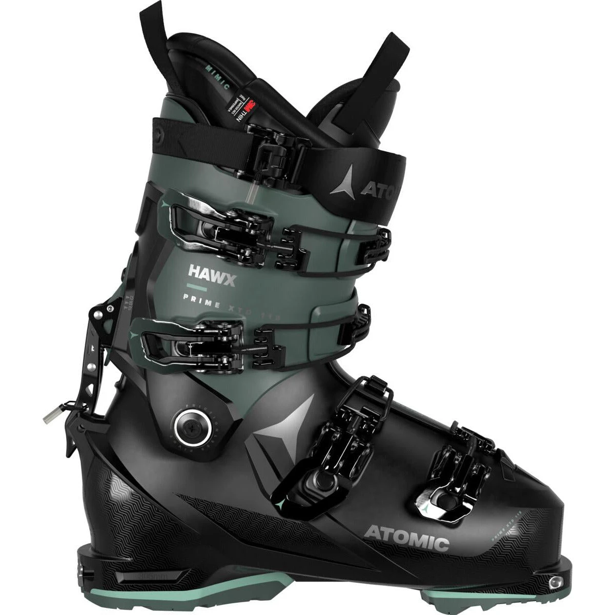 Meet the Atomic Hawx Prime XTD 115 W CT GW. All mountain skiing and freeride touring with one boot. It delivers the Legendary Hawx Feel, skiing power and all-mountain capability of Prolite construction, with the epic natural movement of Backland, thanks to Frictionless Pivot and the Free/Lock 4.0 ski-to-walk mechanism. It’s been updated with a Mimic Platinum W liner that can be molded precisely to your foot shape and has a Achilles Flex Zone for uphill mobility. This top Hawx XTD 115 women’s model has a women-specific cuff height and shape, all in a width for medium feet. Complete Tech inserts in both the toe and the heel allow for maximum touring binding compatibility. Go earn some turns!